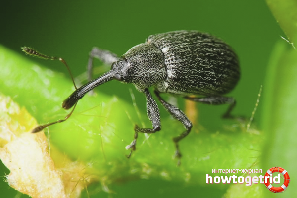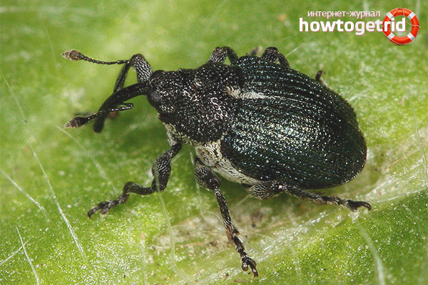 Les scientifiques connaissent plus de 70 000 variétés de charançon, mais les fraises sont affectées par le scarabée le plus commun dans notre bande, à savoir le charançon framboise-fraise. Elle affecte toutes les baies du site - non seulement les framboises et les fraises, mais aussi les groseilles, les fraises, les mûres. Lorsque ce parasite est trouvé dans l'une des cultures, des mesures urgentes doivent être prises pour empêcher la propagation et la reproduction des insectes.