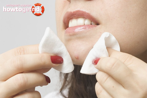 La meilleure chose que vous puissiez faire est de graisser la zone infectée avec du vert brillant ou de l'iode, dans des cas extrêmes, traiter avec du peroxyde d'hydrogène. Encore une fois, il convient de le rappeler: vous ne pouvez pas presser et percer une ébullition vous-même!