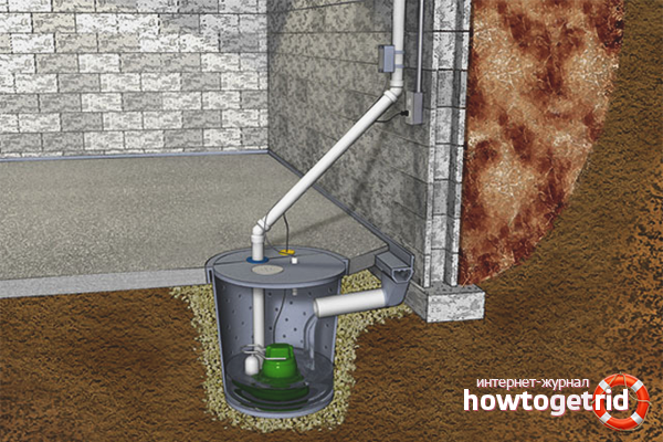 Tous les propriétaires de sous-sol n'ont pas la possibilité de créer une pente avec un système de drainage. Par conséquent, dans ces domaines, une méthode différente est utilisée. Pour vidanger la pièce, un système automatique de pompage de l'excès d'eau est installé.