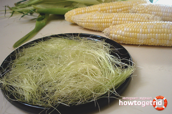 L'urrolithiase a longtemps été traitée avec des stigmates de maïs. Les cheveux sont retirés des oreilles jeunes ou matures, séchés au soleil, puis 1-2 pincées de la plante sont brassées avec 250 ml d'eau bouillante. Insistez dans un bocal en verre enveloppé dans une écharpe ou dans un thermos.