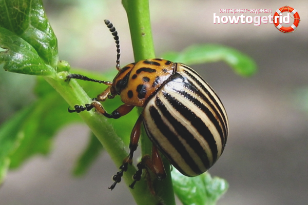 Les coléoptères du Colorado sécrètent une substance toxique qui détruit les adultes et les jeunes individus, ainsi que 70 à 80% des œufs. Vous devez travailler avec l'insecte vierge dans des gants en caoutchouc. Les toxines sont dangereuses pour l'homme.