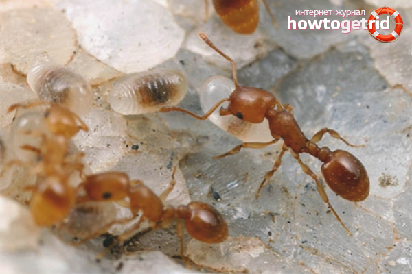 La science moderne possède plus de dix mille espèces de ces insectes. Mais le plus souvent, dans les maisons et les appartements, vous pouvez trouver une fourmi rouge. Les colonies de fourmis sont constituées de l'utérus, des mâles, des femelles, des individus qui travaillent, des larves et des pupes. L'utérus est le chef de file de la colonie qui produit une progéniture. Il est assez difficile de se débarrasser complètement des fourmis sans éliminer l'utérus - il reconstitue rapidement la "population" avec de nouvelles jeunes fourmis. L'utérus, les mâles et les femelles produisent une progéniture, mais ne fonctionnent pas. Ils sont nourris par des individus qui travaillent, ils transfèrent également des larves et des pupes en cas de déplacement de la colonie vers un nouvel endroit. Les individus qui travaillent sont des femelles stériles et peu développées qui ne peuvent pas produire de progéniture. Détruisant ces travailleurs acharnés, vous ne pourrez pas éradiquer complètement la vie des fourmis rouges dans l'appartement. Si vous voulez vous débarrasser complètement de ces insectes, vous devez trouver l'utérus et agir en conséquence.