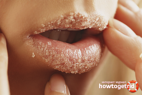 - Sel de mer et miel. Pour faire un gommage, vous avez besoin de 45 ml. miel liquide et 30 gr. sel de mer broyé. Mélanger ces composants, appliquer sur les lèvres, peler pendant 3 minutes. Retirez les restes avec une serviette, assurez-vous de lubrifier la peau avec de la crème.