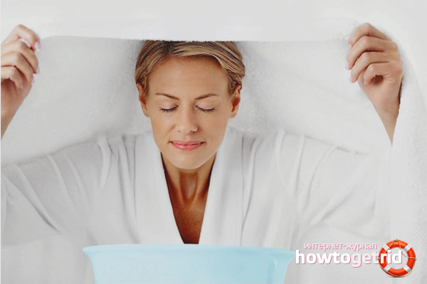 - Descendez sur le récipient avec la perfusion afin que votre visage soit à une distance de 30 à 45 cm (ajustez en fonction de vos propres sentiments).