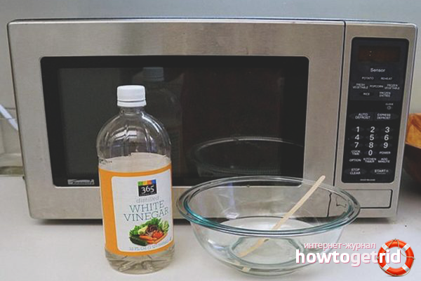 - Prenez un petit récipient pour le four à micro-ondes, versez-y de l'eau purifiée environ la moitié du volume total. Ajoutez ensuite 60 ml au récipient. 9% vinaigre de table.