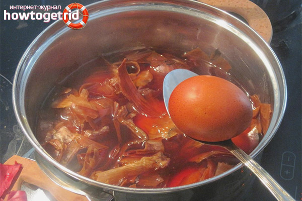 - Selon cette technologie, il est possible de modifier la pigmentation des œufs en utilisant des balles d'oignons de toute nature, rouges ou jaunes. Surtout, n'oubliez pas que la perfusion dans laquelle le composant est abaissé doit être effectuée bien à l'avance.