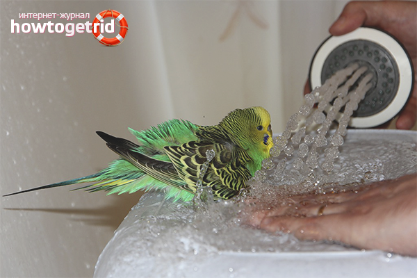 Prenez la qualité de l'eau au sérieux. Un élément important est la lampe au-dessus de la cage pendant la saison froide, car l'animal doit sécher après le bain. Assurez-vous qu'il n'y a pas de brouillons. Il convient de rappeler que la méthode de traitement de l'eau est sélectionnée en tenant compte de la nature de l'oiseau. La baignade est considérée à juste titre comme un spectacle extrêmement fascinant pour le propriétaire et un processus agréable directement pour l'animal lui-même.