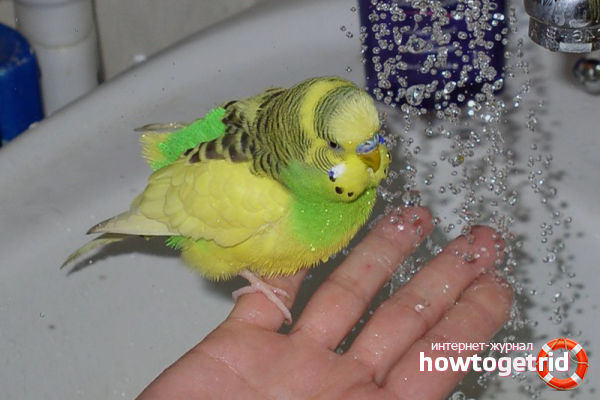 Il est facile de laver un perroquet à la maison si vous avez des connaissances pratiques et suivez les instructions. Laissez l'oiseau éclabousser dans de l'eau tiède ou nettoyez les plumes avec de la poudre de talc pour bébé. Effectuer des traitements à l'eau avec de l'herbe mouillée ou du sable fortifié. Ne violez pas le régime de température, ne laissez pas les courants d'air.