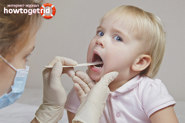 - La maladie s'accompagne de maux de gorge, de chatouillements, d'inconfort lors de la déglutition. La gorge à l'examen est rouge, enflammée. L'enfant peut se plaindre d'inconfort dans la gorge.