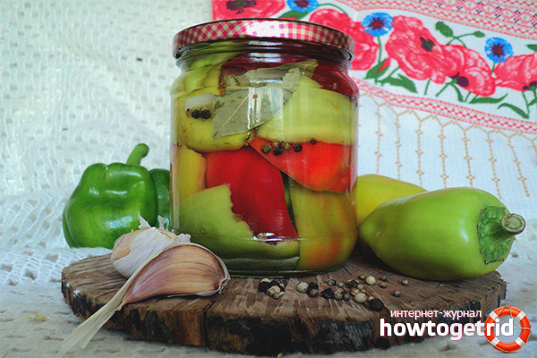 - Mettez le poêle en moyenne, laissez mijoter un quart d'heure. Pendant ce temps, les poivrons marinés seront prêts. Vous devrez brancher le récipient et refroidir.