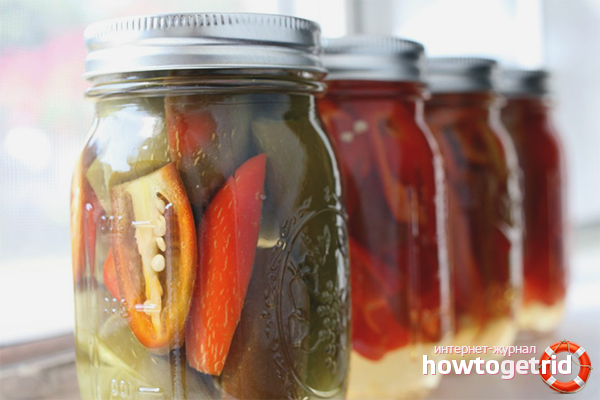 - Si vous roulez du poivre dans des boîtes de 0,5 L, la stérilisation est effectuée pendant 10 minutes. Pour les conteneurs d'un litre, la durée augmente jusqu'à un quart d'heure.