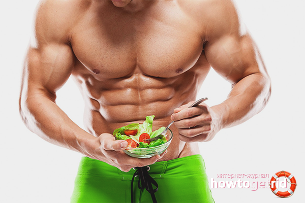 Pour que les muscles se développent intensément, une attention particulière doit être accordée à la nutrition. Sa base devrait être la protéine. Les aliments protéinés devraient représenter plus de la moitié du régime alimentaire de l'athlète. Si le matin et le déjeuner, vous pouvez vous procurer des glucides sous forme de céréales et de fruits, le soir, il devrait y avoir un dîner purement protéiné. Fromage cottage, un morceau de volaille ou de poisson, salade de légumes - idéal.