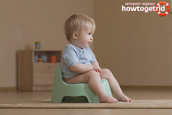- Les mamans remarquent généralement quand le bébé veut aller aux toilettes. A ce moment, et il est nécessaire de planter l'enfant dans un pot. Au fil du temps, lui-même commencera à comprendre et s'assoira ou demandera à le planter.
