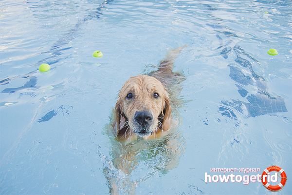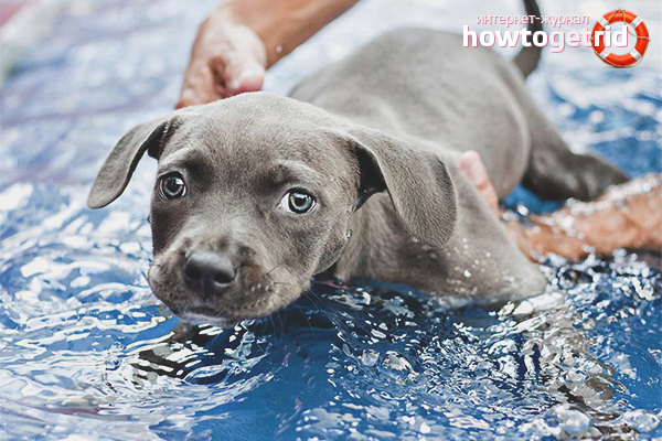 - Le rôle principal dans cet aspect est joué par le fait que le chien est attaché au propriétaire et veut constamment être près de lui. Introduisez l'animal dans l'eau à faible profondeur.