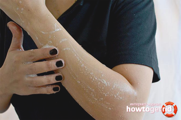 - Après la procédure, lavez la zone traitée, tapotez-vous les mains avec une serviette. Répartir la lotion sur peau humide, laisser jusqu'à absorption complète.