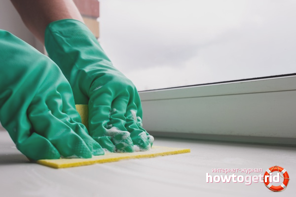Deux fois par mois, il est recommandé d'utiliser diverses solutions pour nettoyer le rebord de la fenêtre, ce qui aidera à se débarrasser de la présence de composants nocifs à sa surface. Donc, parfait: