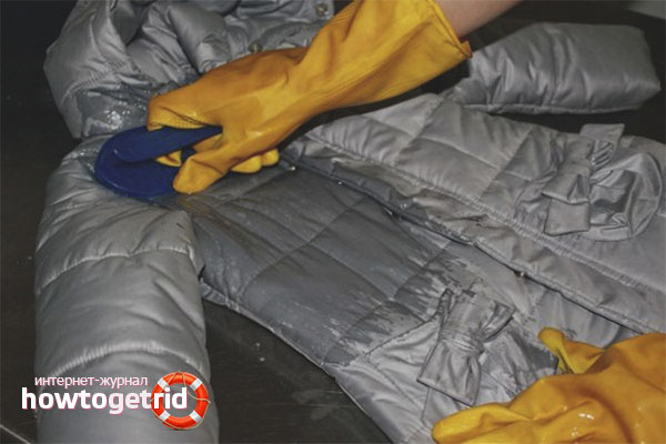 Une autre façon, encore une fois, pour les vestes qui ne sont pas contre-indiquées au lavage est d'utiliser un détachant. Le produit est appliqué sur la tache selon les instructions, il ne reste pas un peu de temps pour un effet plus efficace, puis le produit entier est envoyé à la machine à laver. Exposez le programme approprié, lavez, séchez et généralement le problème est résolu.