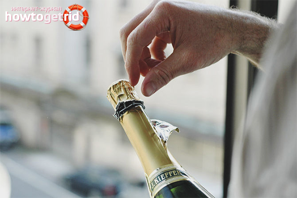 - Il est facile de retirer le bouchon de la bouteille; une pression accrue fera tout le travail pour vous.Si vous pratiquez le nombre de fois requis, vous pourrez à l'avenir ouvrir la boisson sans renverser d'alcool.