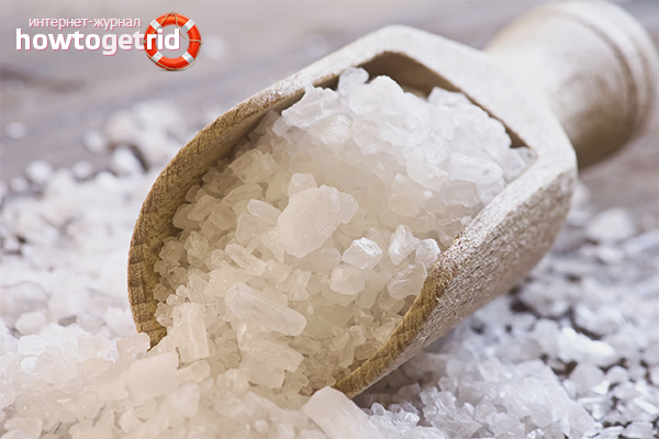 - Prenez 100 gr. sel de mer sans colorants ni parfums, mettre dans un moulin à café, moudre. S'il n'y a pas de moulin à café, broyez la composition en poudre avec un marteau. Mélanger le sel avec 100 gr. bicarbonate de soude, diluer le mélange sec avec de l'eau filtrée. En fin de compte, vous devriez obtenir une masse épaisse qui peut être facilement traitée à la fois sur des panneaux horizontaux et verticaux.