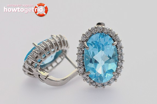 - Dans la plupart des cas, les topazes sont découpées en boucles d'oreilles, après quoi elles sont mises en vente. La belle moitié est heureuse d'acheter des bijoux sans penser à un nettoyage supplémentaire. En règle générale, une grosse pierre est insérée dans les boucles d'oreilles, qui s'estompe avec le temps.