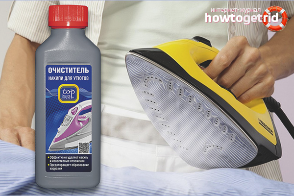 - Kit de repassage Top house. Il se compose d'une bougie avec laquelle la surface de la semelle et les trous de vapeur sont nettoyés. Le détartrant contient des acides organiques, il n'endommagera donc pas les éléments chauffants. Un capuchon spécial ne permettra pas d'ouvrir un agent chimique à un petit enfant. La serviette incluse dans le kit éliminera la saleté et le tartre résiduels.