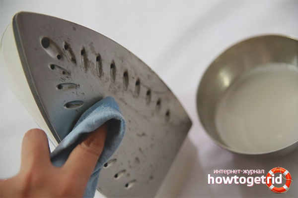 - Le principe de traitement est le même: trempez un lambeau de lin dans l'un des moyens, chauffez le fer et frottez-le intensément avec un chiffon humide. Éteignez ensuite l'appareil, attendez 7 heures, le matin éliminez les résidus par un simple repassage.