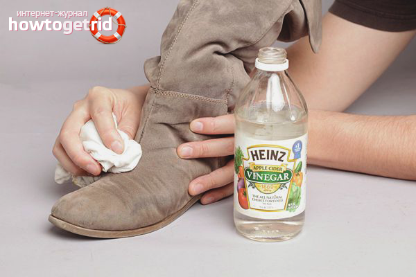 - Taches de sel. Très souvent, des fuites de sel restent sur les sédiments à la surface du suède. Ils peuvent être éliminés avec du vinaigre ou du jus de citron. Dissolvez le jus d'un citron dans un verre d'eau et essuyez votre chose avec ce composé. Il n'est pas nécessaire de rincer le produit - il suffit de le sécher et de le «peigner».