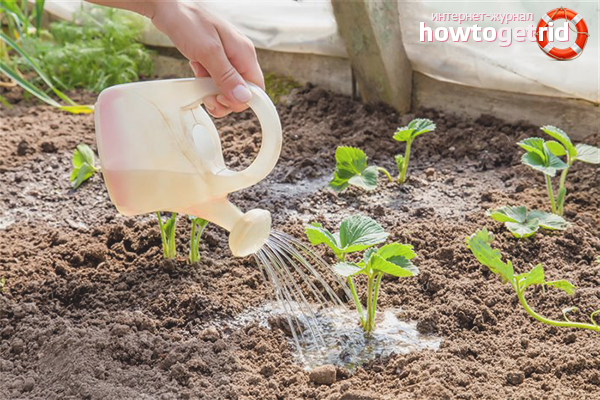 Sans aucun doute, il devrait y avoir de l'humidité dans le sol pour planter des fraises. Mais nous recommandons un total de 2 irrigations: