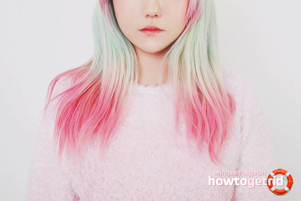 - Après avoir éclairci les pointes, séchez vos cheveux, étalez de la peinture brillante selon les instructions. Divisez les cheveux en mèches, appliquez tour à tour des pigments sur la partie clarifiée des boucles. Envelopper chaque boucle de papier d'aluminium, laisser tremper pendant 30 à 45 minutes, rincer à l'eau. Assurez-vous d'utiliser le conditionneur après avoir terminé la coloration.