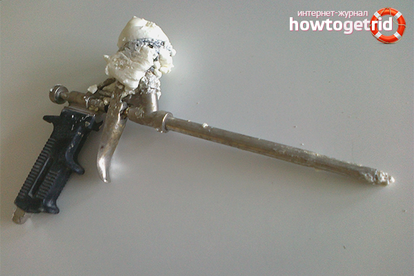 Afin de nettoyer le pistolet lorsque tous les travaux de réparation sont terminés et qu'il n'y a pas besoin de mousse de polyuréthane, vous devez dévisser le récipient avec la substance (très probablement, il devra être jeté si vous ne l'utilisez pas dans quelques semaines, car après cette période, la mousse sèche à l'intérieur) . De plus, il existe deux scénarios: