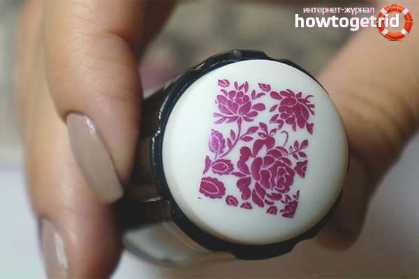 - Prenez un tampon, assurez-vous de la dureté de votre propre main. D'un mouvement clair, appuyez sur la tête de l'appareil sur le motif sélectionné. Attendez 3 à 5 secondes pour que le vernis soit transféré sur l'outil. Évaluez le résultat, l'image doit être imprimée de façon claire et vivante.