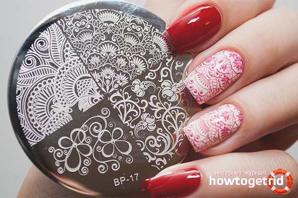 Choisissez un bon tampon à ongles. Le kit doit inclure une plaque métallique avec vos motifs préférés, ainsi qu'un grattoir pour éliminer le vernis résiduel de la cavité de gravure. Avant de décorer, préparez les ongles, faites une manucure. Gardez le tampon en position verticale, assurez-vous que votre main ne tremble pas avant d'appliquer le motif.