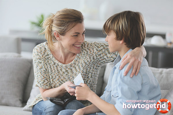 Ici, les psychologues frappent particulièrement activement leurs talons sur la poitrine, prouvant que cela ne peut pas être fait! Mais avouons-le maintenant: sans argent nulle part et nulle part. Surtout si les parents d'amis ou de camarades de classe donnent de l'argent à leurs enfants sans raison. Avez-vous besoin que votre enfant envie les autres? Non? Donc, nous nous tenons à jour et encourageons financièrement la progéniture.