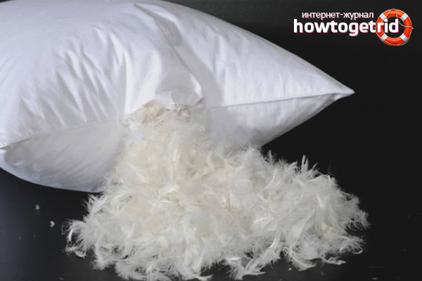 - Les plumes sales contiennent beaucoup de bactéries. Si l'oreiller est resté longtemps dans le garde-manger ou dans le grenier, ne vous précipitez pas pour y mettre une taie d'oreiller. Disposez et voyez si le champignon a frappé les plumes et la plume, sentez le produit, il ne devrait pas sentir la moisissure.
