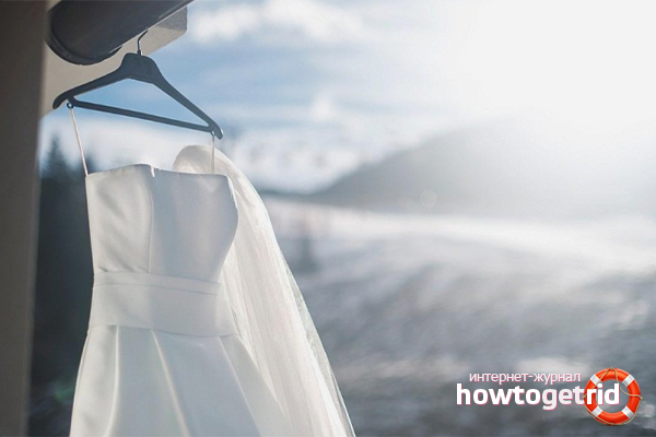 Avant d'envoyer la robe de mariée à la machine ou de se laver les mains, il est nécessaire d'inspecter le produit pour les taches. Comme mentionné précédemment, après la célébration, il y a des traces de sueur, d'alcool et d'herbe, ce qui est un attribut intégral d'une séance photo dans la nature.