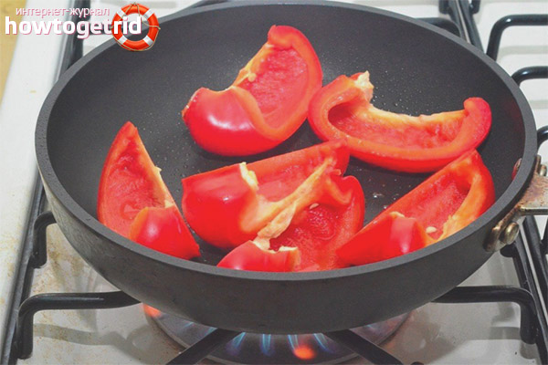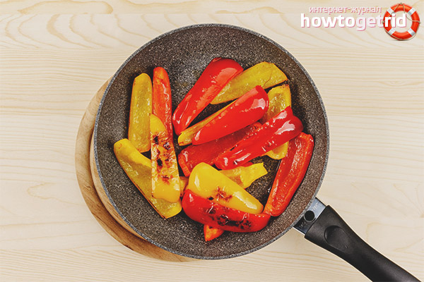 - Le poivre est cuit rapidement, donc, en combinaison avec d'autres légumes, il est ajouté à la poêle l'un des derniers, sinon les tranches brûleront, s'assècheront ou se rempliront de beurre.