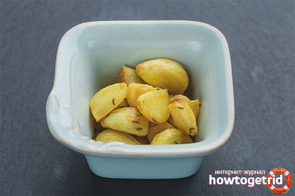 - L'ail rôti est bien absorbé par l'organisme, renforce le système immunitaire, augmentant la résistance aux virus. Et l'ail volatil, donne la nourriture habituelle pour une personne - un arôme appétissant et un goût sucré unique!