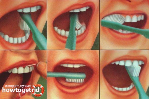 - Commencez toujours l'hygiène en vous brossant les dents, faites des mouvements verticaux plutôt qu'horizontaux. Par vos actions, vous devez «balayer» les bactéries, passer du tranchant aux gencives, et vice versa.