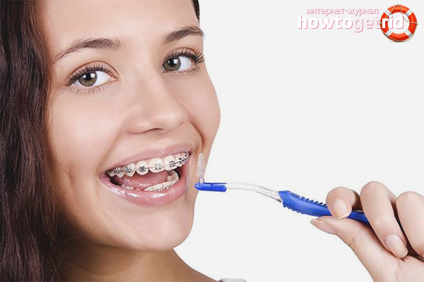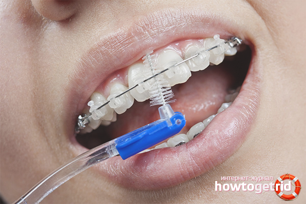 - Lors du nettoyage, vous devez nettoyer non seulement les dents, mais également la conception des accolades.