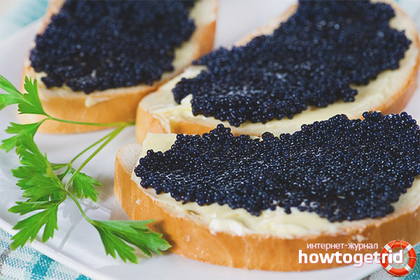Ce n'est pas en vain que le caviar d'esturgeon est considéré comme un produit d'élite. Il est si riche en protéines qu'il peut remplacer complètement d'autres types de produits sans trop endommager le corps. Elle ne pourra pas manger quotidiennement, mais ses propriétés spéciales sont utilisées très souvent. L'une des anciennes recettes pour allaiter les bébés anémiés affaiblis et prématurés était une combinaison de cahors et de caviar, où un nouveau-né devait compter sur la langue 5 gouttes de vin d'église et recevoir 3 œufs écrasés le matin et le soir. L'indice d'hémoglobine d'un enfant a augmenté en quelques jours et la force est apparue. Mais le caviar plus noir est connu comme une délicatesse exquise.