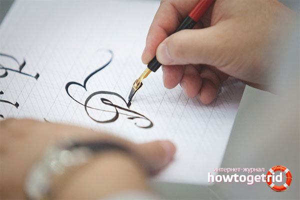 - En entraînant le stylo avec un stylo, vous obtenez l'écriture calligraphique correcte. Cela aidera à résoudre le problème avec la pente incorrecte des lettres, leur clarté.