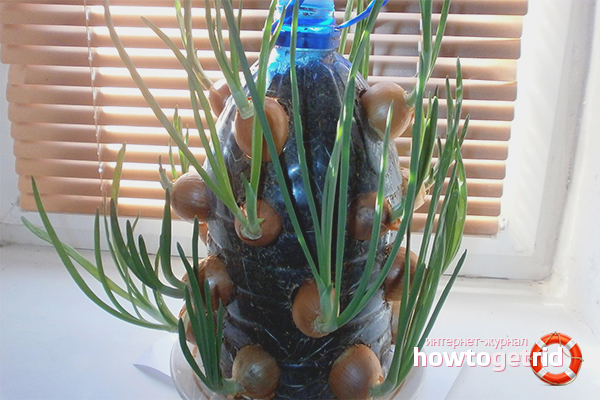 Récipient en plastique. Vous voulez surprendre votre famille et vos amis non seulement avec des herbes fraîches, mais aussi avec un jardin créatif? Ensuite, nous portons à votre attention une nouvelle façon de cultiver les oignons - dans des plats en plastique à base de jus ou d'huile de tournesol (2,5 litres ou 3 litres). Cette option nécessitera également des terres, des plats et des oignons.