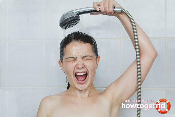 - Rincer à l'eau tiède pendant 3 minutes, laisser le corps s'y habituer. Ensuite, ajoutez la température à chaud pour vous détendre un peu, lavez dans ce mode pendant environ 5 minutes. Commencez à abaisser lentement la température pour refroidir, continuez la procédure pendant encore 1 minute. Remettez la température à chaud et chaud, après 5 minutes à nouveau à froid. Répétez 4 fois. Important! La technique consiste à l'échauffement complet du corps avec une diminution progressive du degré. Ne laissez pas geler, réglez uniquement la température qui est confortable pour le corps.