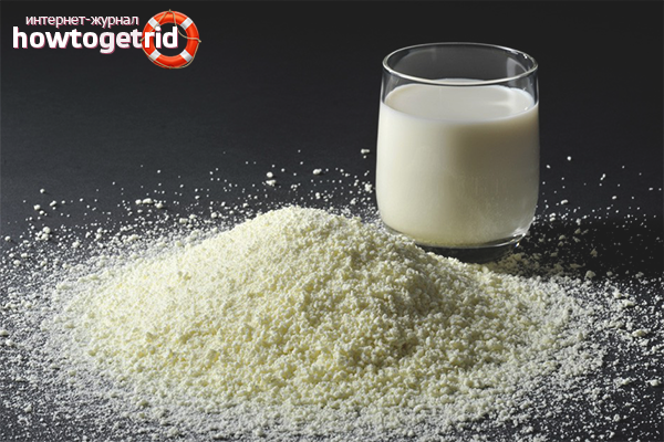 Quelle que soit l'espèce, le principe de dilution de la composition reste identique. Aujourd'hui, il existe trois principaux types de lait en poudre: produit écrémé, lait entier, poudre instantanée. Parlons de tout dans l'ordre.
