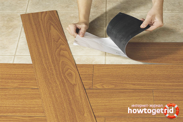 Enfin, nous sommes arrivés à l'étape finale et la plus importante - la pose de carreaux en PVC. Donc, comme mentionné précédemment, vous devriez commencer avec l'autocollant exactement sur les lignes marquées au centre de la pièce.