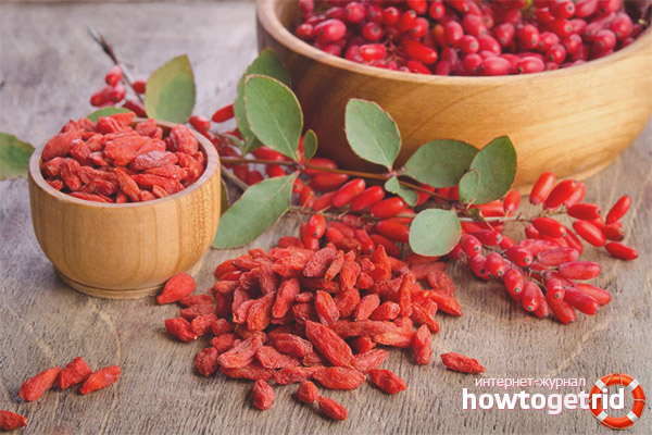 - Vous pouvez utiliser la recette suivante: vous devez mélanger en proportions égales l'épine-vinette, le fruit du goji, un peu d'adonis et de gui, 1 cuillère à soupe chacun. Les matières premières doivent être versées avec de l'eau bouillante et cuire pendant un quart d'heure.Ensuite, la boisson doit être infusée et filtrée. Il est nécessaire d'utiliser une cuillère à soupe d'un tel outil deux fois par jour. La durée du traitement est de 3 semaines.