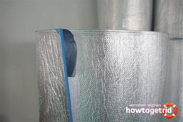 - Pose d'un pare-vapeur. Pour le pare-vapeur, utilisez souvent un film d'aluminium. Elle est battue avec une agrafeuse au plafond depuis le côté de la pièce.