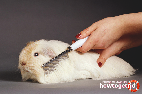 Les cochons d'Inde à poil court prennent soin d'eux-mêmes. À l'aide de leurs propres dents, ils peignent et nettoient ainsi leur fourrure. Mais cela ne fera pas de mal si au moins occasionnellement vous le parcourez avec une brosse spéciale. Pendant la mue, principalement en automne et au printemps, il est nécessaire de peigner les cheveux deux fois par semaine.