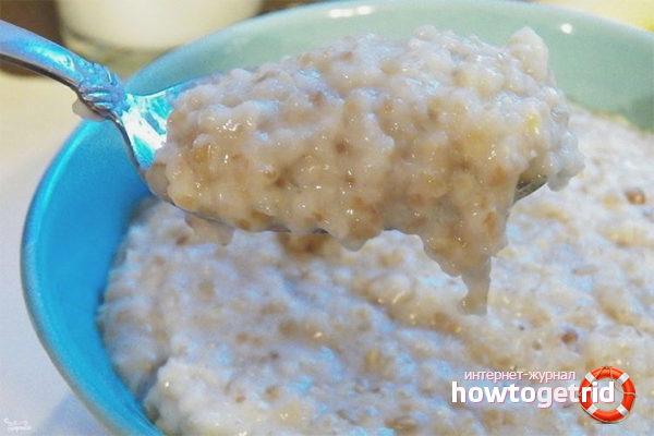 - Porter le liquide à ébullition, puis réduire la puissance (feu moyen), commencer à verser lentement la farine d'avoine. Remuer le plat en même temps avec une spatule en bois pour que le gruau ne colle pas aux plats.