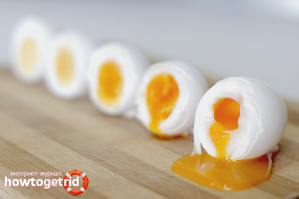 - Certaines personnes aiment le jaune, qui a une densité élevée sur les bords, mais a un noyau liquide. Dans ce cas, après ébullition, les œufs ne sont pas cuits plus de 5 minutes.